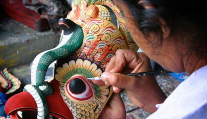 Ambalangoda is a coastal town located in Galle District, Southern Province of Sri Lanka. It is famous for masks and Puppets. Mask making is one of the most popular traditional industry in Sri Lanka. The mask make by artisans. The mask is vibrant and colorful devil faces. These hands carved and hand painted masks in traditional dance dramas are both vibrant and colorful. The traditional masks are carved from light Balsa like Kaduru wood. Both in carving and painting, the artisan obeys ancient scriptures, which give stringent guidelines. Ariyapala and Sons is an important landmark in the town of Ambalangoda that famed for its history and expertise mask carving and culture.
